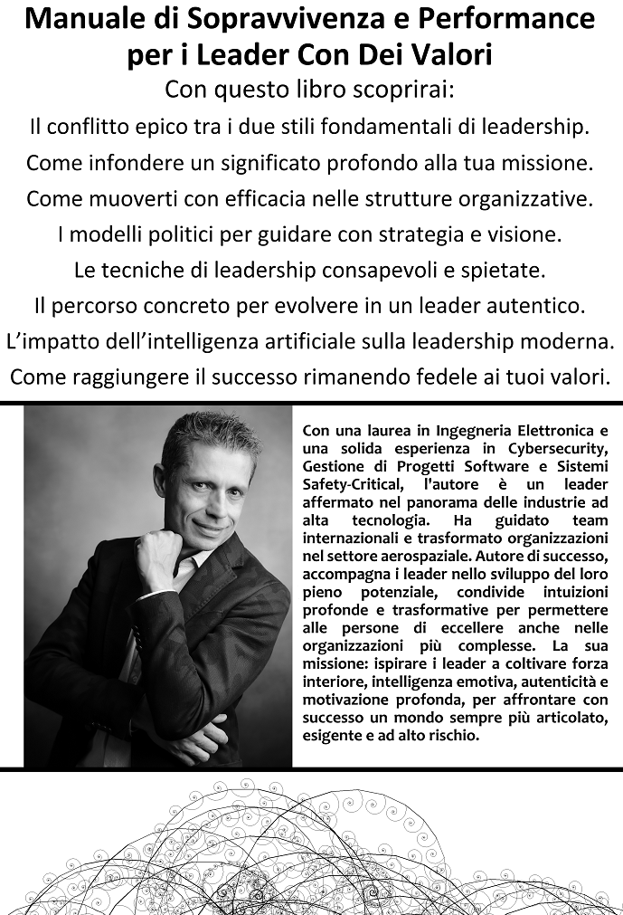 “Se aspiri a guidare con valori positivi, devi dotarti dello stesso livello di abilità e consapevolezza dei concorrenti più spietati. Devi comprendere come è strutturato il potere, come funziona l’influenza e come sopravvivere quando manipolazione, abuso o sabotaggio vengono usati contro di te. Devi imparare a guidare in un mondo modellato dalla tecnologia e dall’Intelligenza Artificiale—dove autenticità emotiva, chiarezza etica e resilienza mentale non sono più opzionali—sono essenziali.